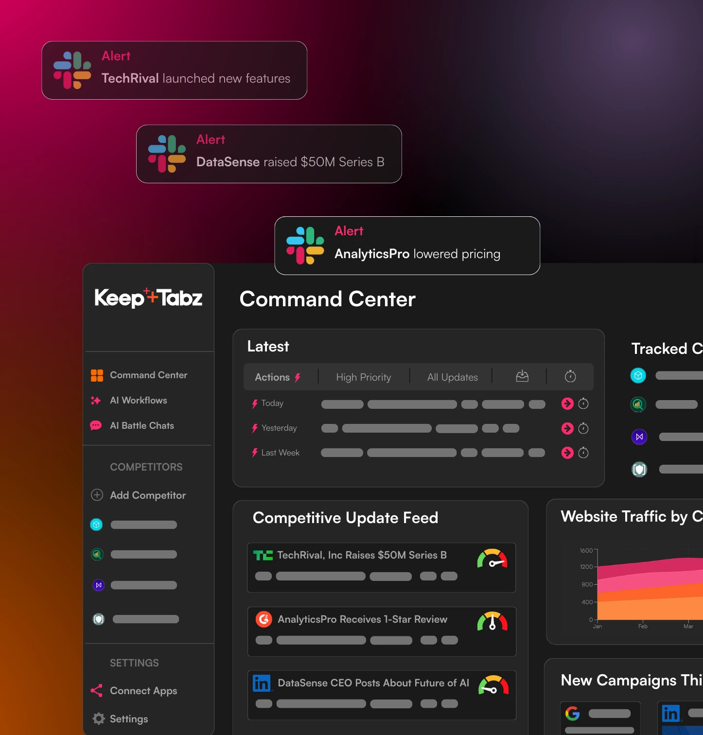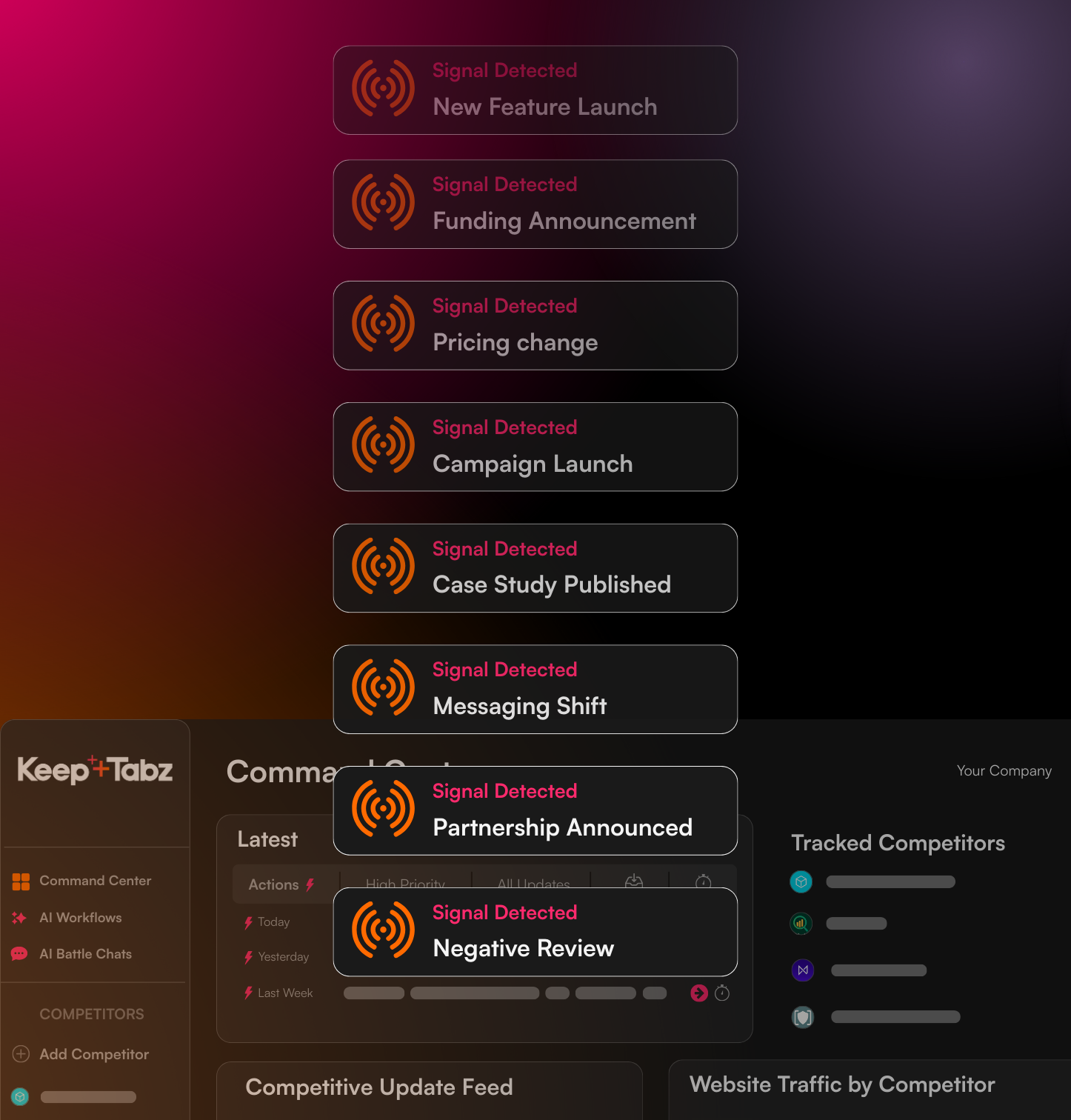 KeepTabz boosts the signal and filters out the noise, alerting you whenever your competitors are making important moves.